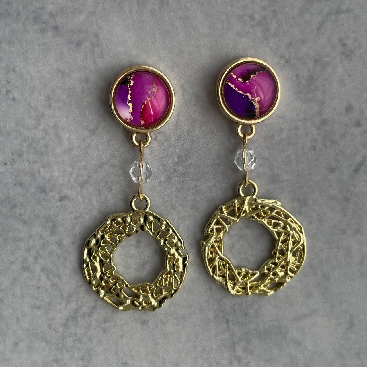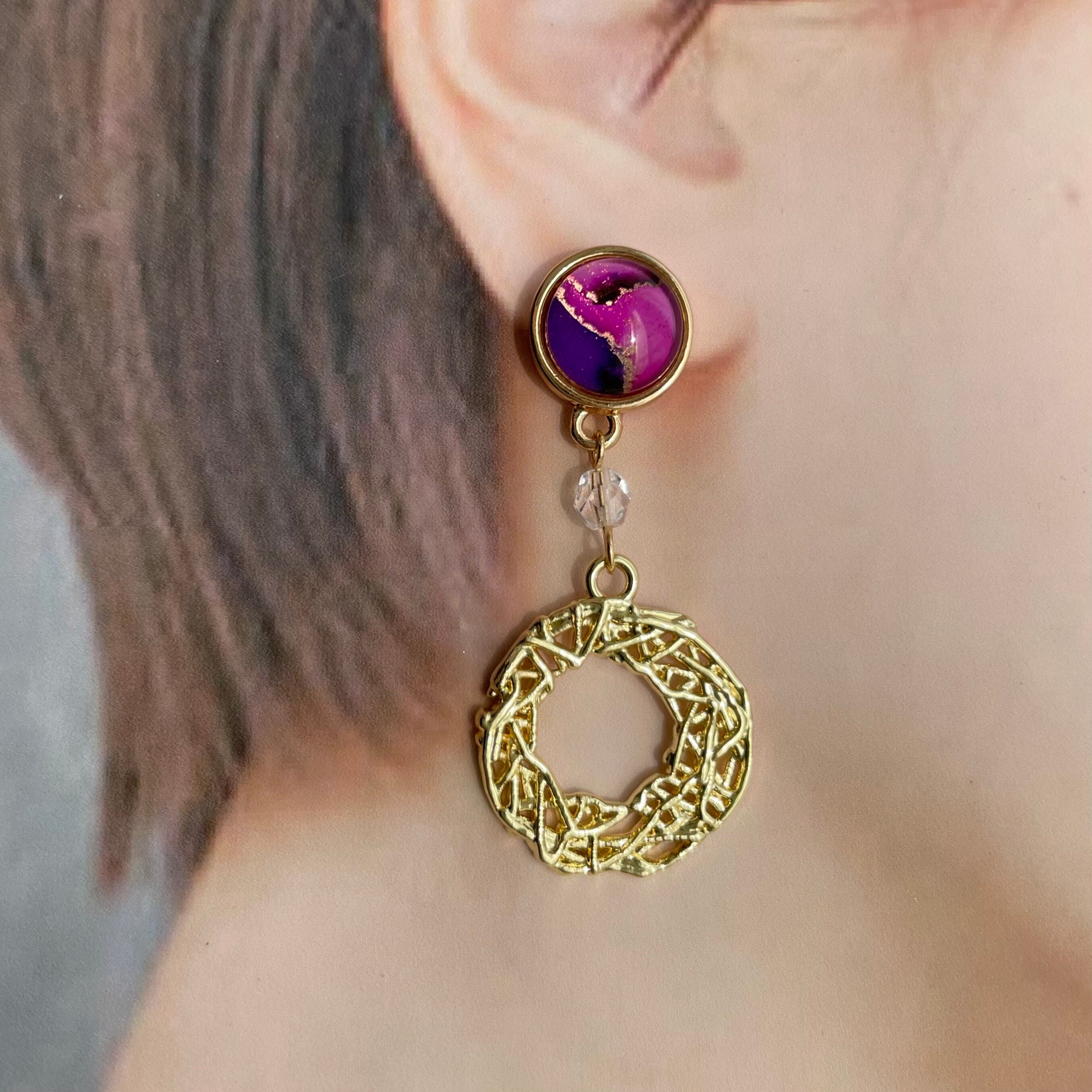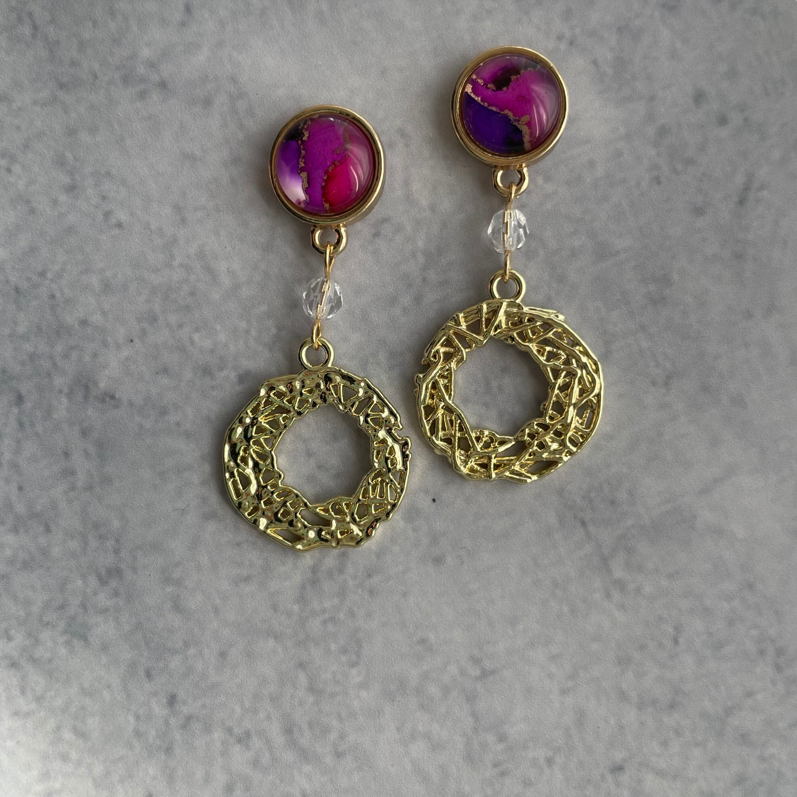 アルコールインクアートを切り取って作ったピアスです
